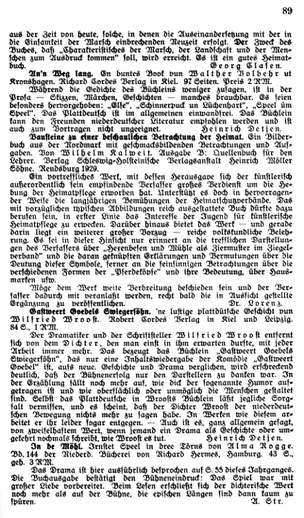 | Rez. in Quickborn: | H. Detjen in: Quickborn Jg. 23, S. 89 |