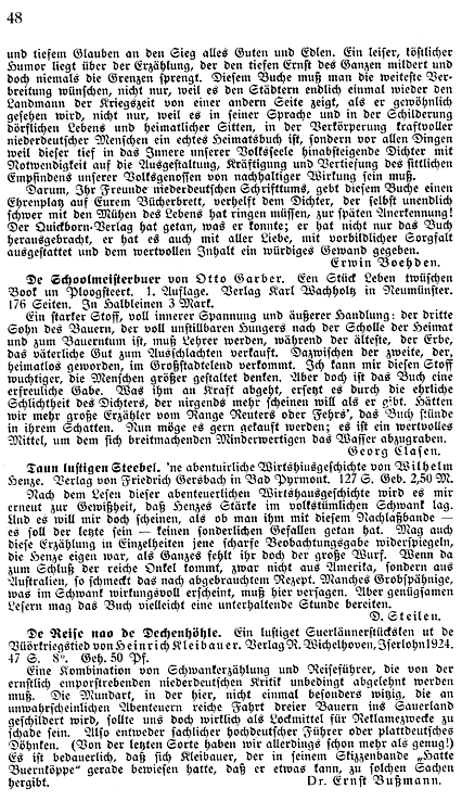 | Rez. in Quickborn: | E. Bußmann in: Quickborn Jg. 18, S. 48 |
