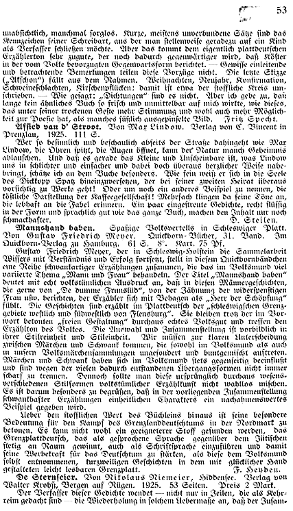 | Rez. in Quickborn: | D. Steilen in: Quickborn Jg. 19, S. 53 |