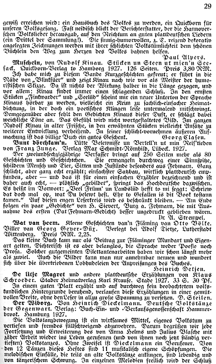 | Rez. in Quickborn: | A. Strempel in: Quickborn Jg. 21, S. 29 |