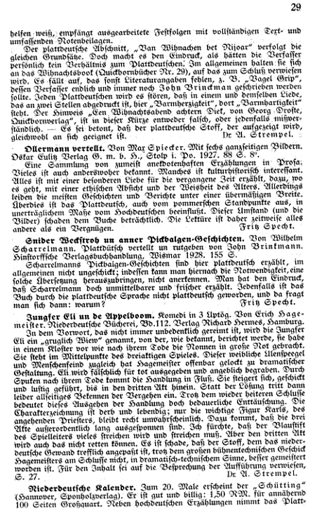 | Rez. in Quickborn: | A. Strempel in: Quickborn Jg. 22, S. 29 |