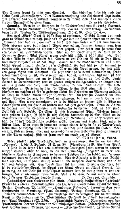 | Rez. in Quickborn: | H. Hoops in: Quickborn Jg. 13, S. 55 |