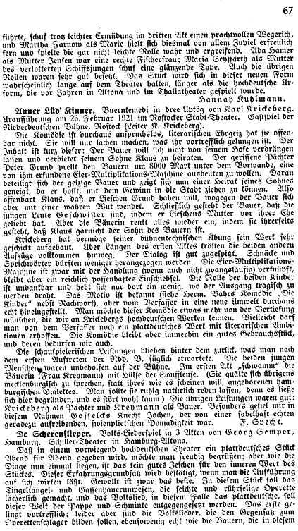 | Umfang | 95 S. | Aufführung | UA: Niederdeutsche Bühne Rostock, 26.02.1921 |